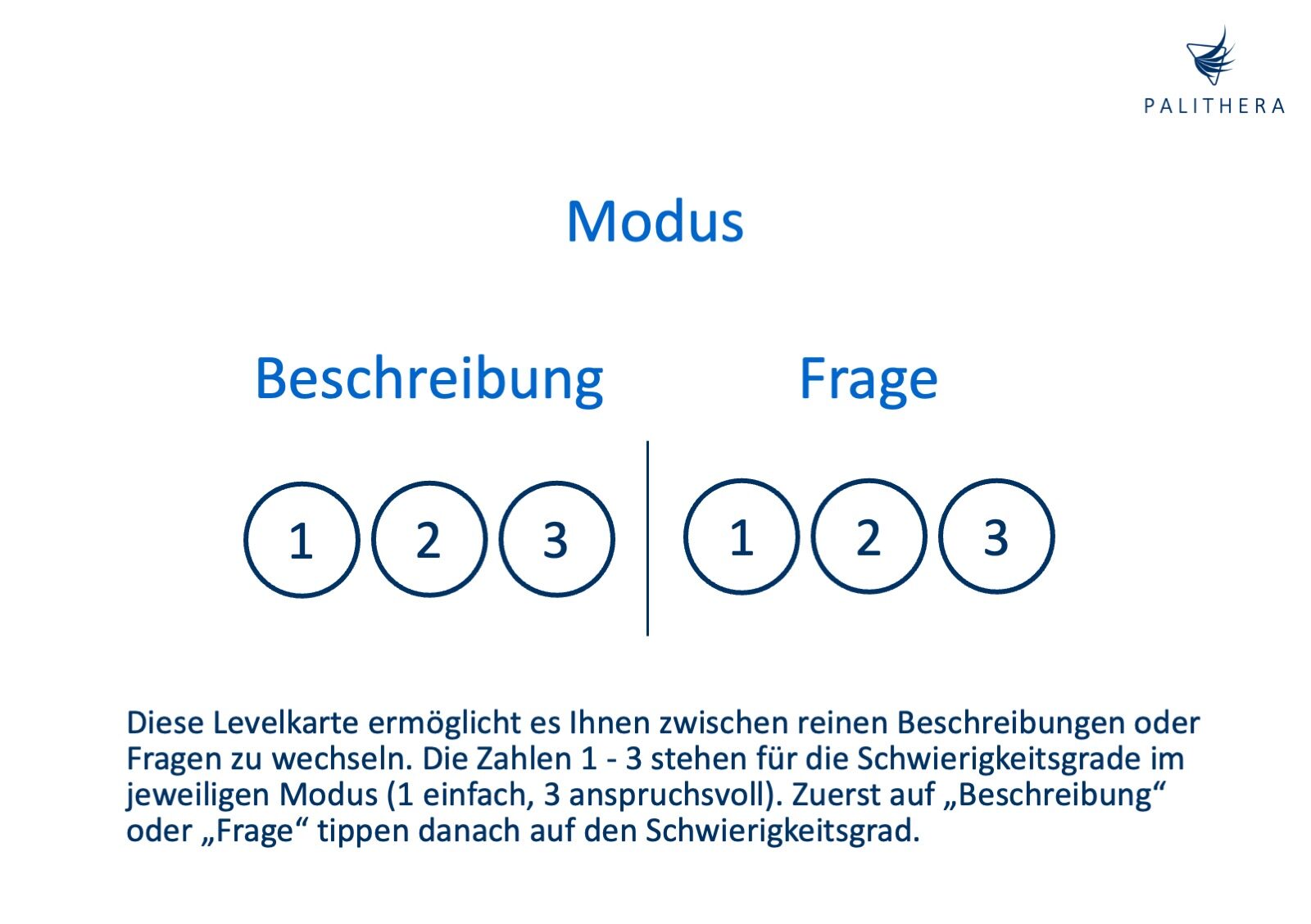Diese Karte bietet Beschreibungen und Fragen in verschiedenen Schwierigkeitsgraden – von einfach bis komplex. Sie können den Schwierigkeitsgrad jedes Mal neu anpassen, je nachdem, wie es Ihrem Familienmitglied an diesem Tag geht. Dies ermöglicht eine flexible und individuelle Interaktion, die genau auf die Bedürfnisse und die Tagesform Ihres Angehörigen abgestimmt ist.